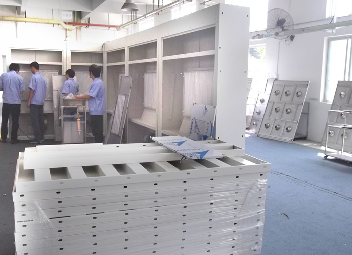 FFU、風(fēng)淋室、貨淋室、傳遞窗、高效送風(fēng)口、潔凈棚、潔凈采樣車等產(chǎn)品鈑金加工車間